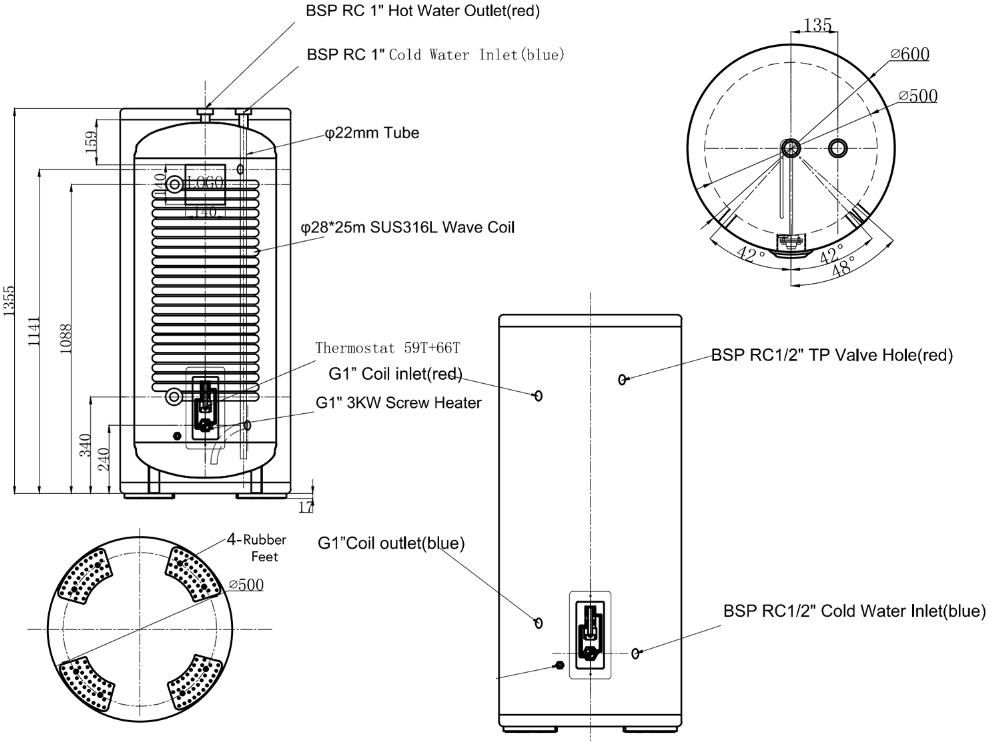 Protank Plus Indirect has been developed to meet the needs of those home owners wanting a high capacity, high pressure hot water system that is going to last. The internal tank and fittings are crafted from the highest possible spec ‘Duplex’ 2205 stainless steel and performance matched to Caleffi’s latest high flow valve set. The high capacity coil allows large amounts of hot water to be generated from a small foot print
