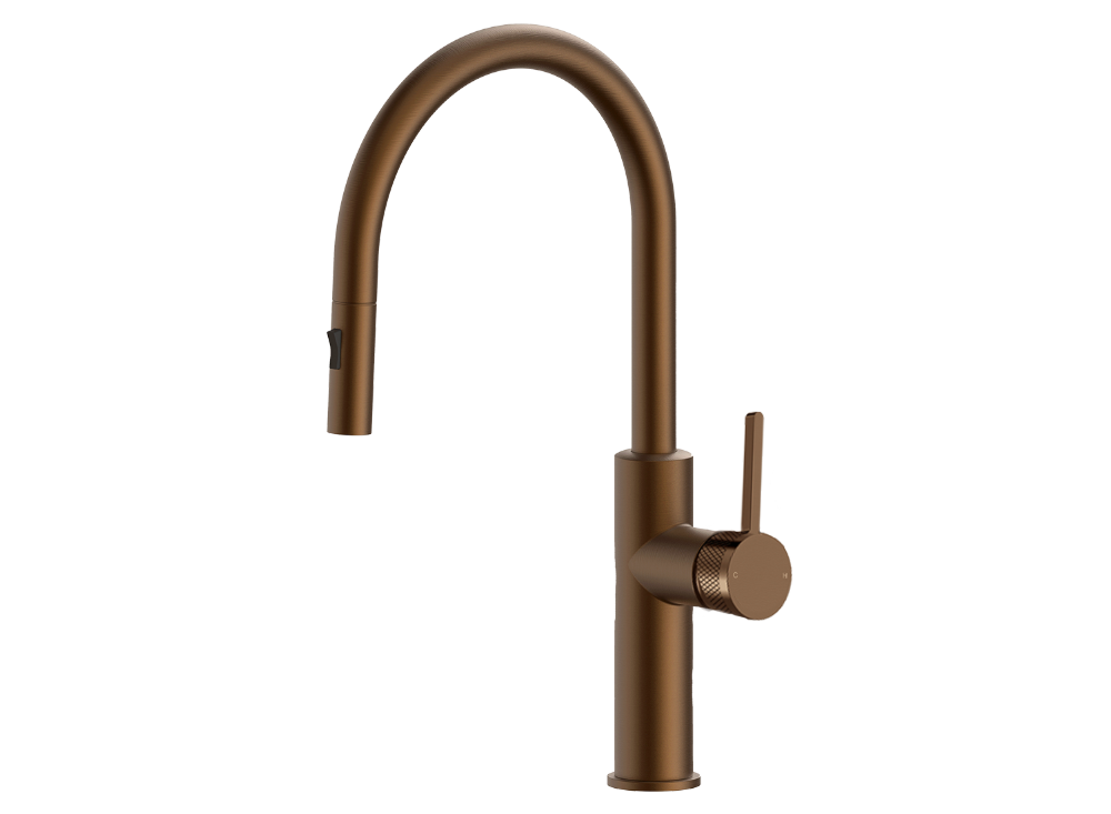 Rivet Gooseneck Kitchen Mixer Brushed Copper
